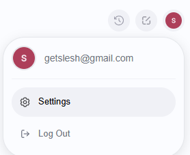 To open settings click your profile icon and click the Settings option in the dropdown. On the settings page you can toggle the privacy setting, clear data and delete your account.