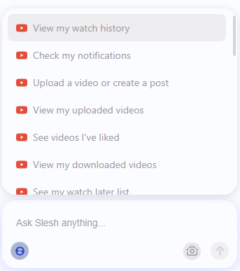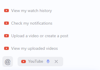 When starting a new conversation, quick actions will appear above the context bar. Although only four options are visible by default, you can scroll through more hidden options using the mouse wheel or trackpad. These options will disappear the moment a message is sent in a conversation.